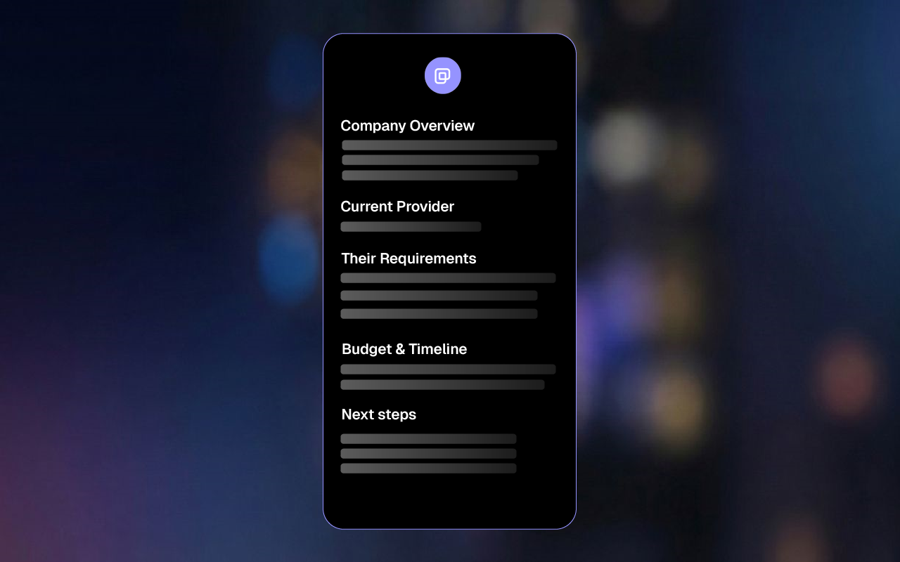 - Generate CRM updates, deal briefs, presentations, ROI calculators, and next-step artifacts — automatically